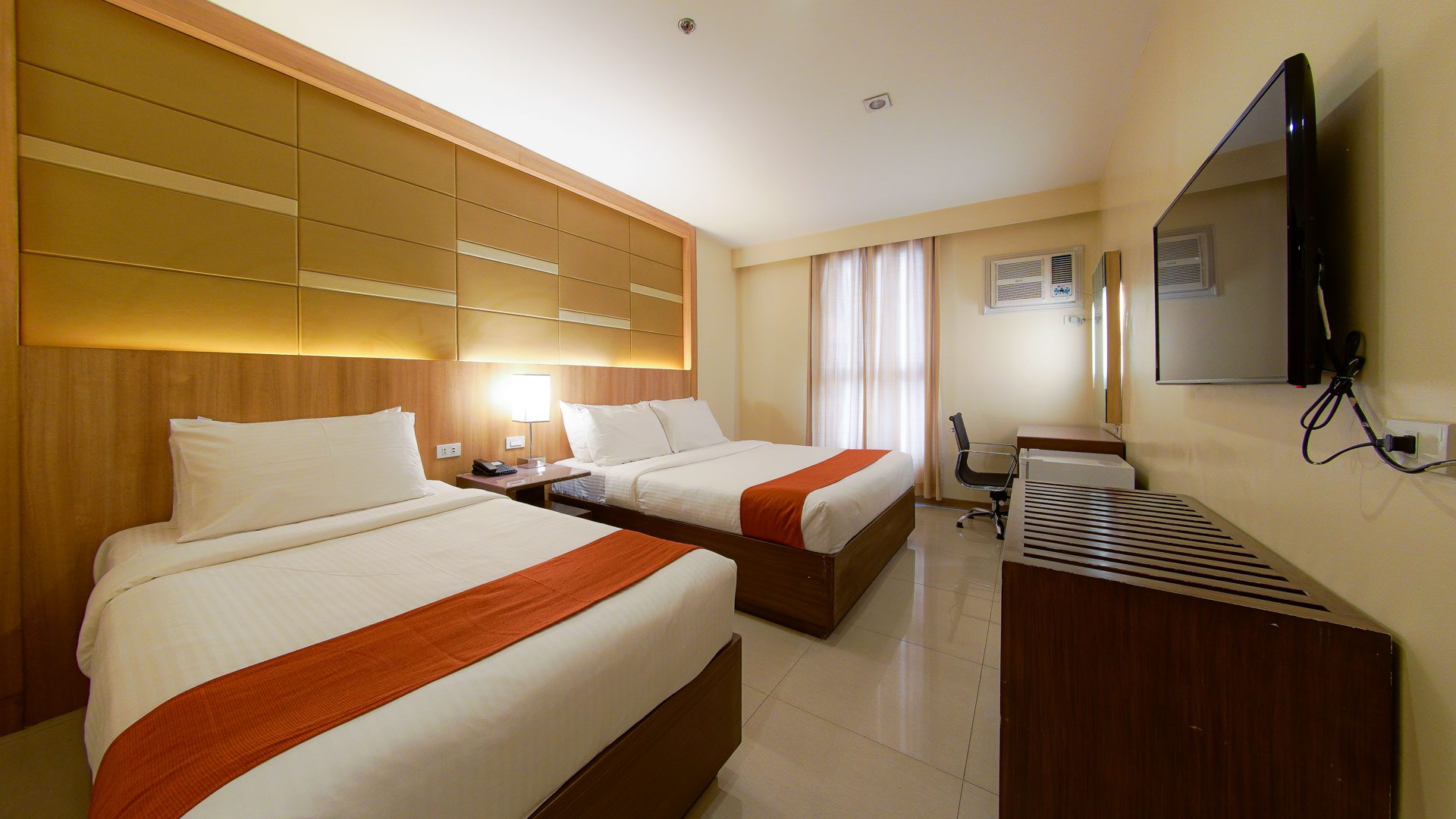 Details Adults: 3 Children: 1 Amenities: Air-Conditioning, Free Wi-Fi, Hair Dryer, Perculator, Refrigerator, Safe, Shower, TV View: Session Road Bed Type: Single and Queen Bed Prices start at: ₱4,695 per night Required fields are followed by * Check-in Date * Check-out Date * Adults 1 2 3 4 5 6 7 8 9 10 11 12 13 14 15 16 17 18 19 20 21 22 23 24 25 26 27 28 29 30 Children 0 1 2 3 4 5 6 7 8 9 10 Have a relaxing sleep with our Superior Trio Room with a queen-sized bed and a single bed.