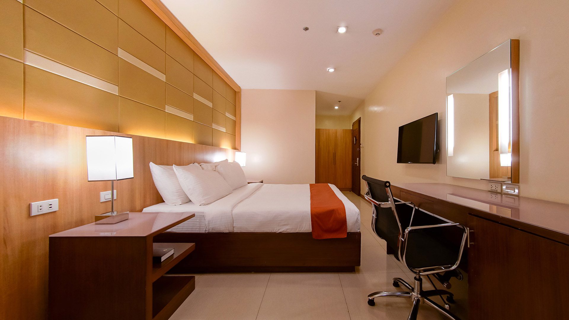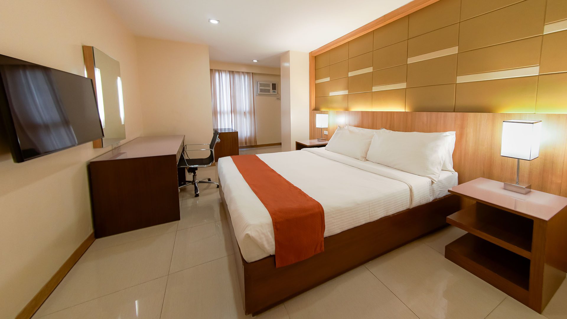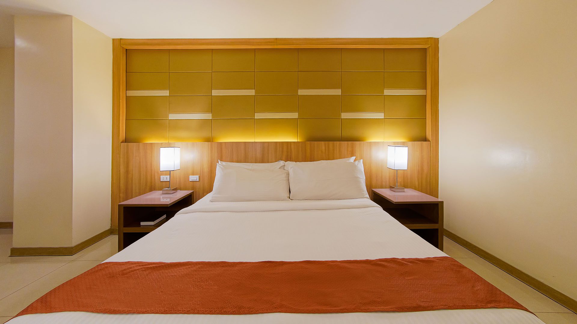 Details Adults: 2 Children: 1 Amenities: Air-Conditioning, Free Wi-Fi, Hair Dryer, Perculator, Refrigerator, Safe, Shower, TV View: Burnham Park Bed Type: King Bed Prices start at: ₱4,395 per night Required fields are followed by * Check-in Date * Check-out Date * Adults 1 2 3 4 5 6 7 8 9 10 11 12 13 14 15 16 17 18 19 20 21 22 23 24 25 26 27 28 29 30 Children 0 1 2 3 4 5 6 7 8 9 10 The Premiere room has a king-sized bed with the view of Burnham Park.
