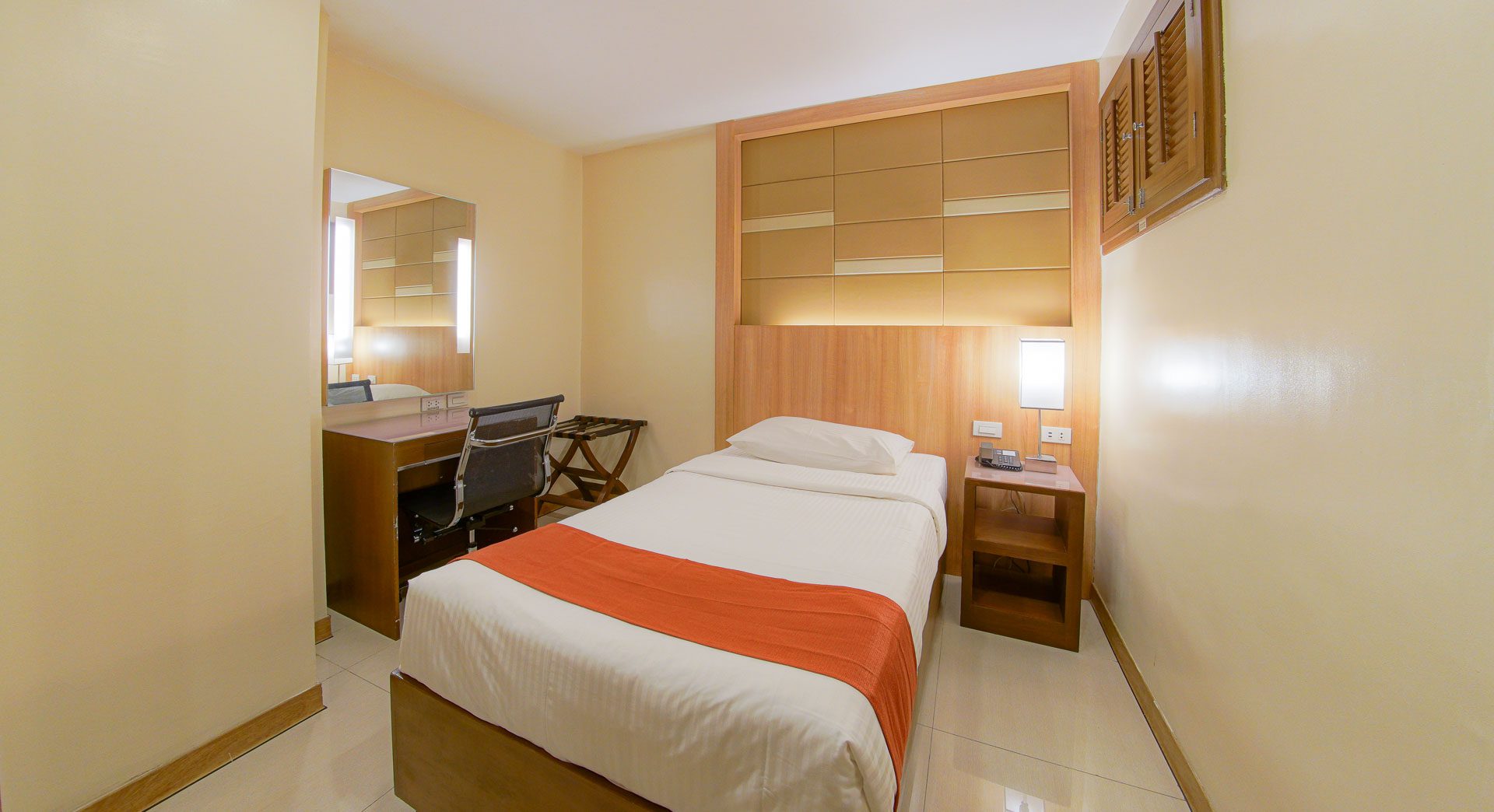 Details Adults: 1 Amenities: Air-Conditioning, Free Wi-Fi, Hair Dryer, Perculator, Safe, Shower, TV View: None, Inner Rooms Bed Type: Single Bed Prices start at: ₱1,795 per night Required fields are followed by * Check-in Date * Check-out Date * Adults 1 2 3 4 5 6 7 8 9 10 11 12 13 14 15 16 17 18 19 20 21 22 23 24 25 26 27 28 29 30 Children 0 1 2 3 4 5 6 7 8 9 10 Perfect choice for a solo traveler looking for a relaxing sleep. This room features one single bed and a private bath complete with amenities.